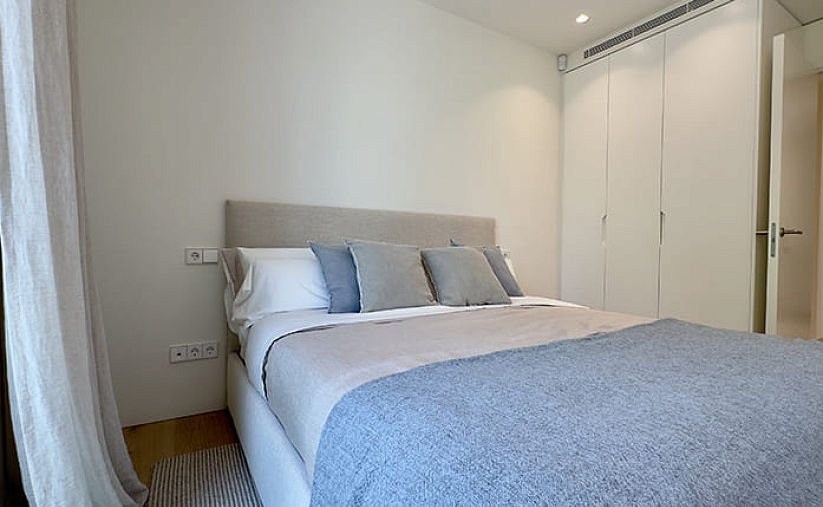 Die Wohnung verfügt über ein Schlafzimmer, ein Badezimmer und einen lichtdurchfluteten offenen Wohnbereich mit großen Fensterfronten, die jeden Raum mit natürlichem Licht erfüllen. Das Interieur wird vollständig eingerichtet und dekoriert übergeben, mit sorgfältig ausgewählten Möbelstücken, die den eleganten Charakter der Anlage widerspiegeln – ein Zuhause, das vom ersten Tag an bezugsfertig ist.